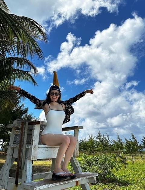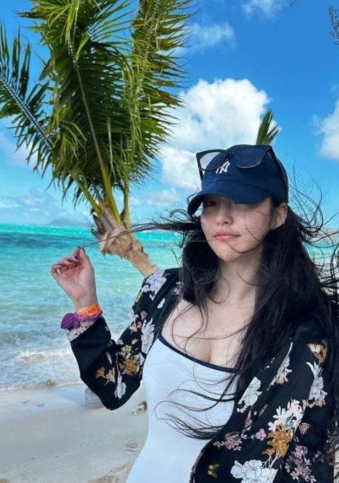 큰 눈을 자랑하는 유정은 흰색 수영복을 입고 여유로운 휴가를 보내고 있다. 특히 유정은 글래머러스한 몸매를 뽐내 시선을 강탈한다.