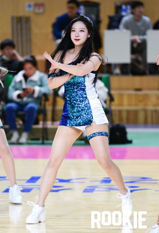 용인실내체육관에서 ‘신한은행 SOL 2022~2023 여자프로농구’ 용인 삼성생명과 아산 우리은행의 경기가 열렸다. 우수한 치어리더가 삼성생명을 응원하고 있다.