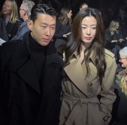 영국 런던에서 열린 버버리 패션쇼에서 배우 전지현과 축구 선수 손흥민(토트넘 홋스퍼)이 함께 있는 모습이 포착됐다.