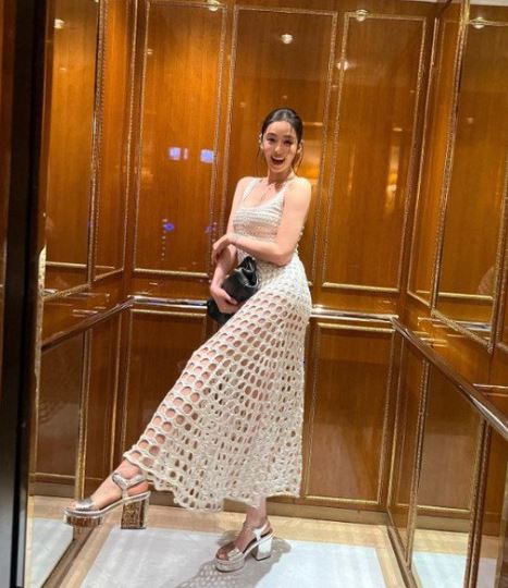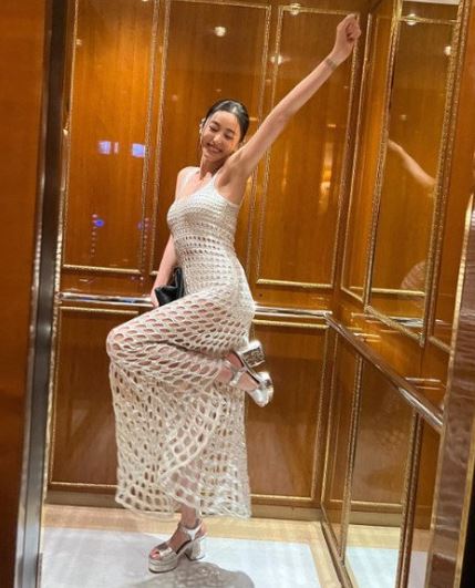 사진 속에는 엘리베이터에서 그물로 된 치마가 인상적인 드레스를 입은 이다희의 모습이 담겼다. 이다희는 활짝 미소를 짓고 있으면서 장난스러운 포즈를 취해보이고 있다.