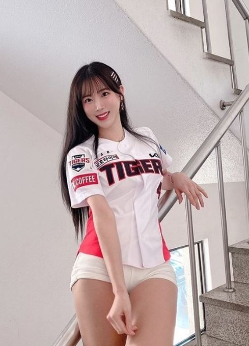 여기에는 김한나 치어리더가 응원복을 입고 카메라를 향해 밝은 미소를 띄우고 있다. 야구 유니폼에 핫팬츠를 입은 그는 탄탄한 꿀벅지까지 자랑하고 있어 눈길을 끌었다.