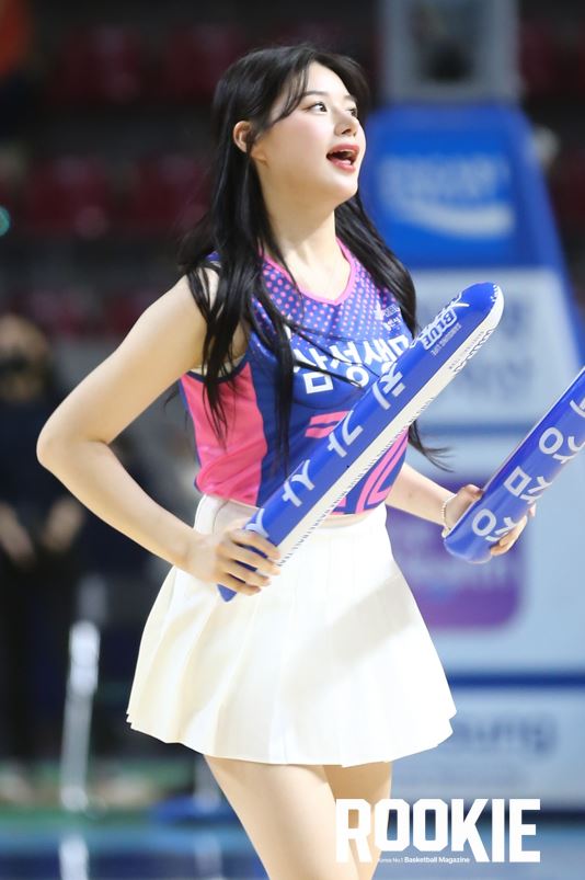 용인실내체육관에서 ‘신한은행 SOL 2022~2023 여자프로농구’ 용인 삼성생명과 부산 BNK썸의 경기가 열렸다. 이예빈 치어리더가 삼성생명을 응원하고 있다.