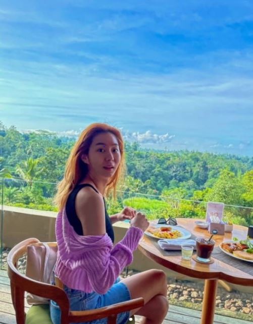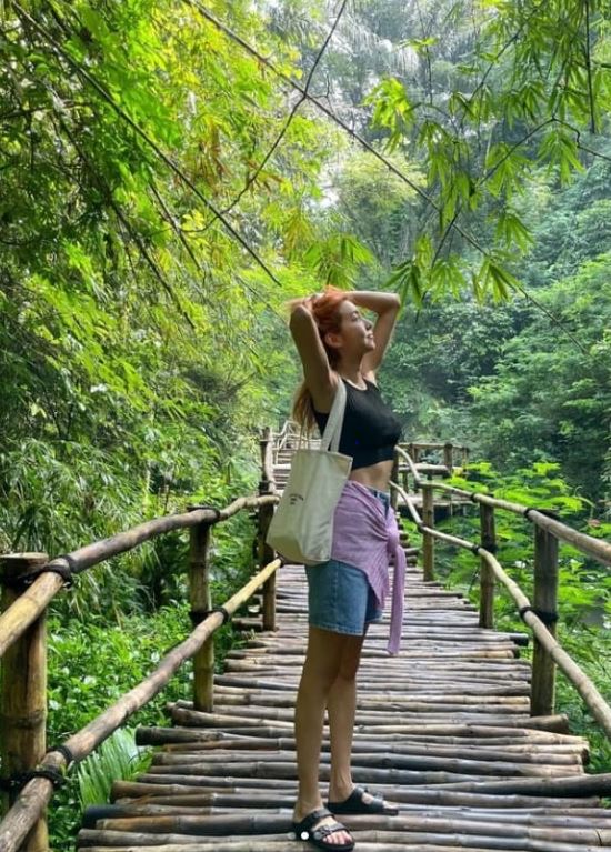 유이는 최근 인스타그램에 귀여운 이모티콘과 함께 여러 장의 사진을 게재했다. 여기서 유이는 크롭티에 반바지를 입고 여유롭게 여행을 즐기고 있다.