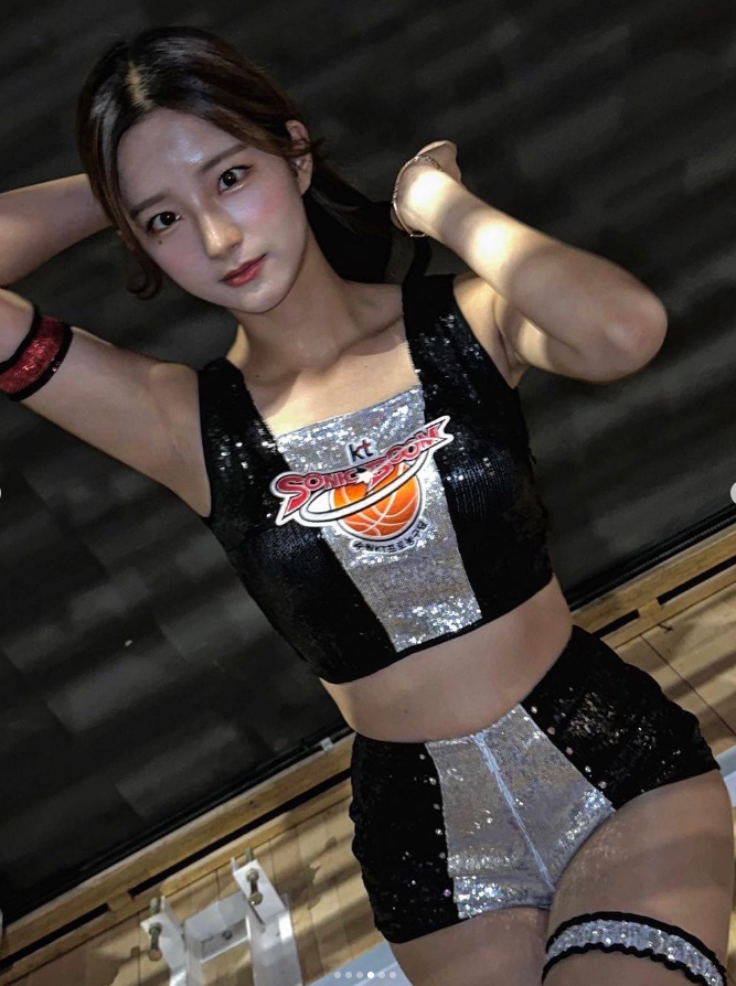공개한 사진 속 김진아 치어리더는 프로농구 KT 소닉붐 응원복을 입고 다양한 포즈를 취하고 있는 모습. 김진아 치어리더의 매력적인 미소와 함께 건강미까지 드러내 눈길을 끈다.