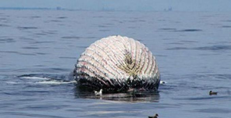 사진 속 물체, 바다의 폭탄은 '고래'의 '시체'이다.