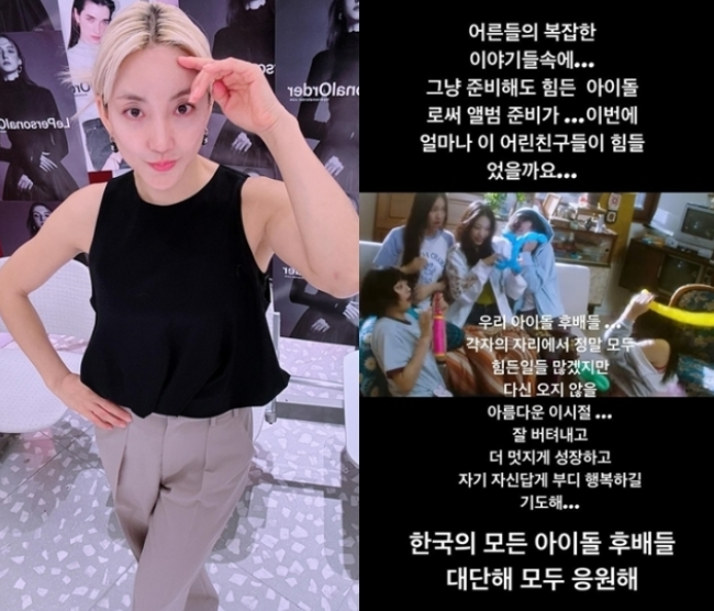 바다는 이어 "우리 아이돌 후배들 각자의 자리에서 정말 모두 힘든 일들 많겠지만 다시 오지 않을 아름다운 이 시절 잘 버텨내고 더 멋지게 성장하고 자기 자신답게 부디 행복하길 기도해..."라고 덧붙였다.