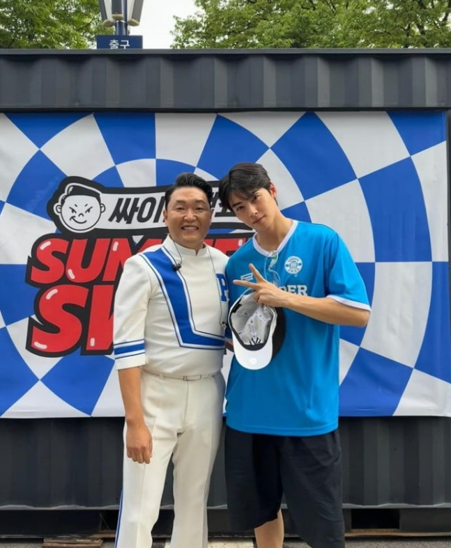아스트로 멤버 차은우가 가수 싸이의 '흠뻑쇼'에 참석해 화제다.