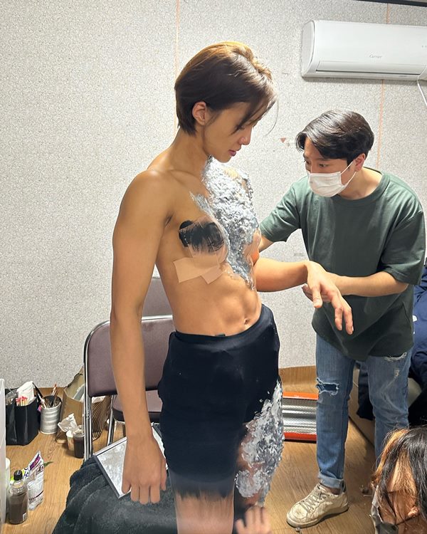 특히 주목을 받은 것은 특수 분장 과정을 담은 사진이다. 상의를 탈의한 채 가슴 부위만 테이핑으로 가린 이시영의 모습에서 탄탄한 복근이 드러나 눈길을 끌었다. 또한 촬영 중 틈틈이 운동하는 모습도 공개돼 철저한 자기 관리를 엿볼 수 있었다.