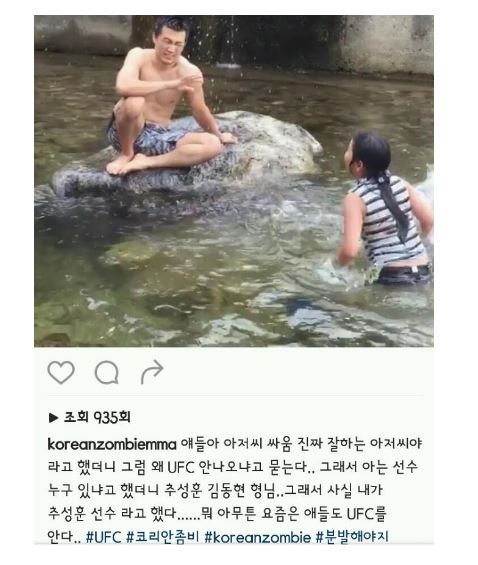 화제의 사진은 정찬성 선수가 자신의 SNS에 공개한 사진으로 정찬성 선수는 계곡에서 아이들이 자신을 전혀 몰라보는 '굴욕'을 겪었다고 한다. 정찬성 선수는 아이들에게 "아저씨 싸움 진짜 잘하는 아저씨야"라고 까지 말했지만 아이들은 믿지 않았고 오히려 "그럼 왜 UFC 안 나와요?"라는 질문을 던져 정찬성 선수를 당황하게 만들었다. 결국 정찬성 선수는 아이들에게도 잘 알려진 격투기 선수 '추성훈'인 척을 해 그곳을 벗어난 것으로 전해진다.