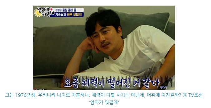 이에 안정환은 "요즘 체력이 떨어진 것 같다"고 말해 웃음을 안겼다.