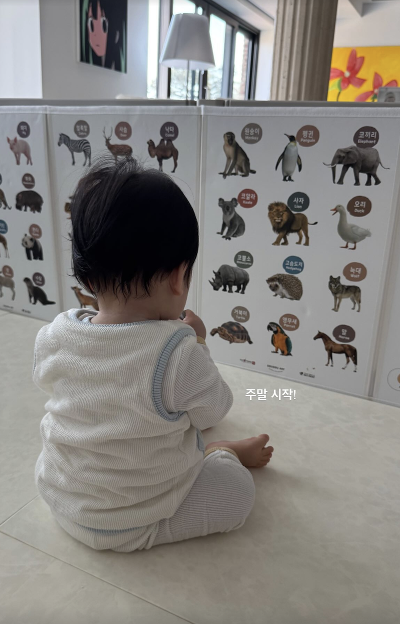 17일 손연재는 인스타그램 스토리에 "주말 시작!"이라는 짧은 문구와 함께 한 장의 사진을 올렸다. 사진 속에는 손연재의 아들이 동물 이름이 적힌 그림을 보고 있는 모습이 담겨 있었다. 특히 손연재의 집 안에는 고급스러운 기둥이 한눈에 들어와 눈길을 끌었다.