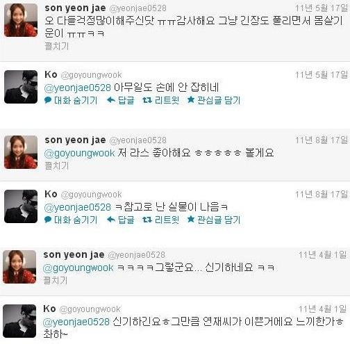 대화 내용을 살펴보면 고영욱은 손연재에게 "신기하긴요. 그만큼 연재씨가 이쁜거에요", "(손연재 걱정에)아무일도 손에 안 잡히네", "참고로 난 실물이 나음"이라며 의미 심장한 말들을 전한 것으로 드러났다.