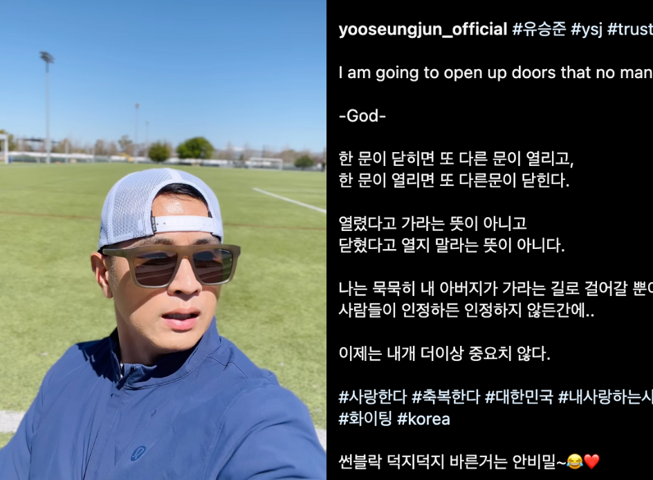 21일 유승준은 자신의 인스타그램에 긴 글과 함께 영상을 올리며 감정을 전했다. 그는 "한 문이 닫히면 또 다른 문이 열리고, 한 문이 열리면 또 다른 문이 닫힌다"는 말을 인용하며, "열렸다고 가라는 뜻이 아니고, 닫혔다고 열지 말라는 뜻이 아니다"라고 덧붙였다. 또한 "나는 묵묵히 내 아버지가 가라는 길로 걸어갈 뿐. 사람들이 인정하든 인정하지 않든 그것은 중요하지 않다"며 자신의 마음을 표현했다.