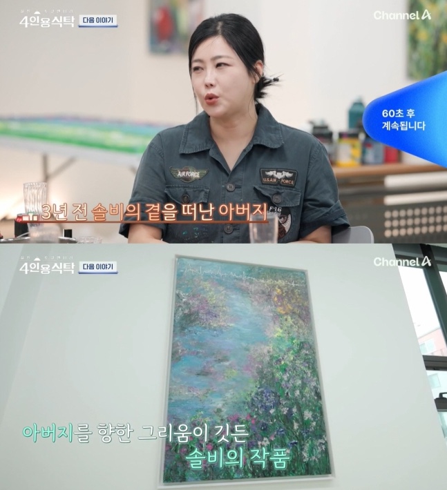 14일 방송된 채널A '절친 토큐멘터리 - 4인용식탁'에서는 솔비가 3년 전 세상을 떠난 아버지에 대한 그리움을 털어놓으며 눈물을 흘린 모습이 그려졌다.