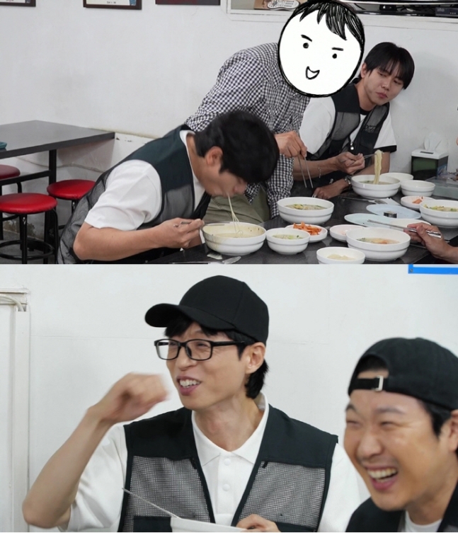 이이경은 “면치기 보여드려요?”라며 비장한 태도로 콩국수로 업그레이드된 ‘어글리 면치기’를 선보여 현장을 웃음바다로 만들었다. 콩물이 얼굴에 튀는 상황에 고객은 당황하며 자리를 피했지만 “참 수고한다”는 격려도 전해졌다.