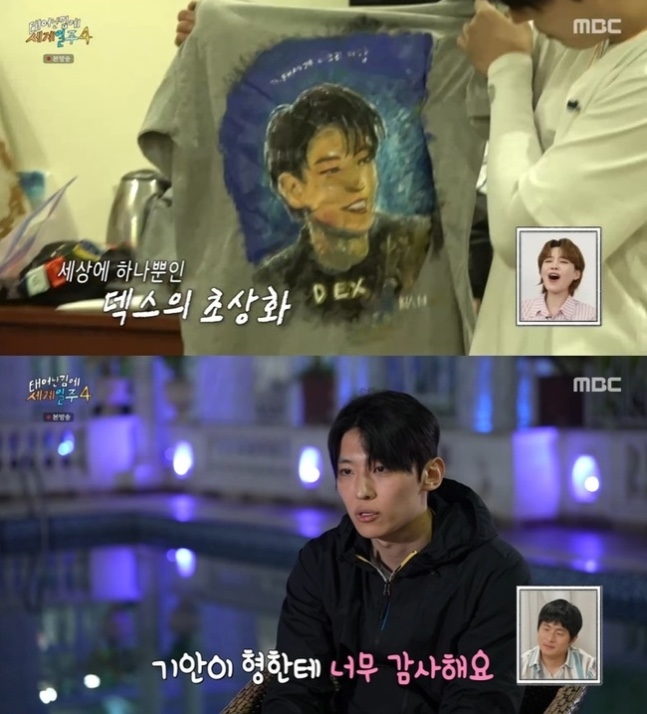 기안84 역시 덱스를 위한 선물을 가방에서 꺼냈다. 바로 덱스의 초상화를 그린 손수 제작 티셔츠였다. 그림 속에는 ‘태세계 마무리 여행’이라는 문구와 날짜가 적혀 있었고, 기안84는 “덱스를 위해 준비한 선물이자, 나에게도 하는 이야기였다”며 뭉클한 속마음을 전했다.