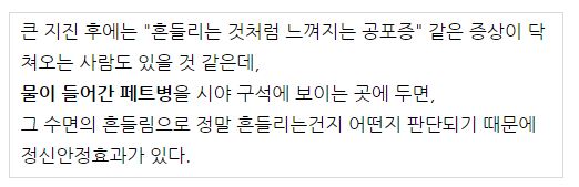 투명한 물병 속 수면이 잔잔하다면 여진이 발생하지 않은 것이다.