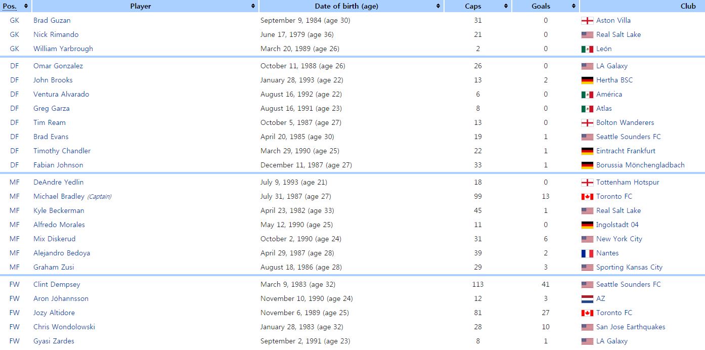 ◆미국(FIFA 랭킹 27위)