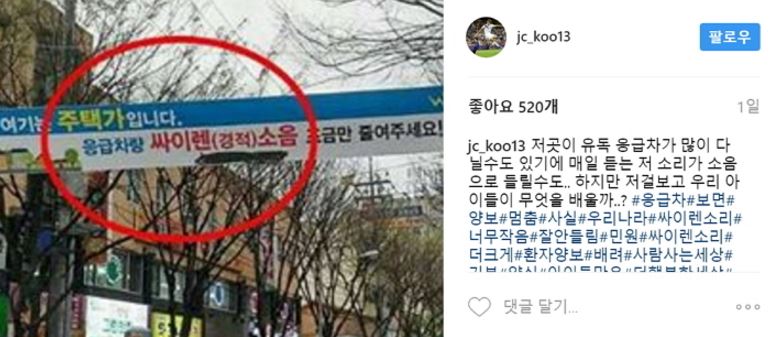 오히려 사이렌 소리가 너무 작아서 잘 안들린다며 환자를 배려하는 차원에서는 경적 소리를 더 크게 해야 한다는 의견을 해시태그로 남겼다.