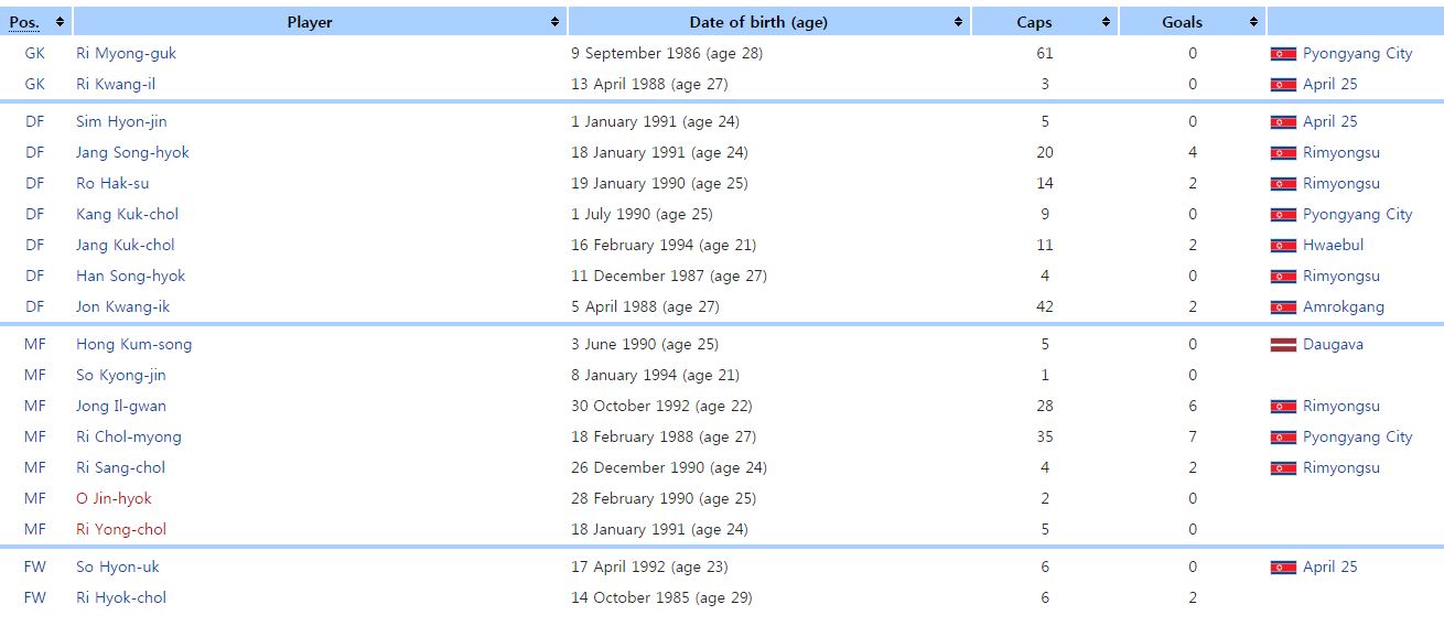 한국, 중국, 일본이 참가하는 이번 동아시아 대회서 북한이 최약체로 고전할 지 장담하긴 어렵다. 먼저 북한은 3명의 해외파를 가동하고 일본 J리그에서 뛰고 있는 조총련계 선수들을 이번 대표팀 명단에 포함시켰다. 한 가지 더 있다면 익숙한 몇몇 선수들은 제외됐다. 30대 이상 선수가 없는데 가장 나이가 많은 선수는 골키퍼 리명국(평양)으로 1986년생이다. 점진적인 세대교체 중인데 그래도 가능한한 이번 대회 성적을 내기 위한 최선의 전력을 꾸린 것으로 보인다.