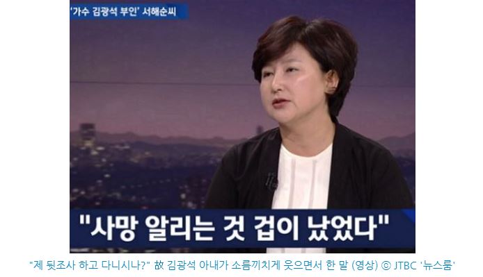 25일 방송된 JTBC 뉴스룸에서는 가수 故 김광석의 아내 서해순 씨가 출연해 여러 의혹들에 대한 자신의 입장을 밝혔다.