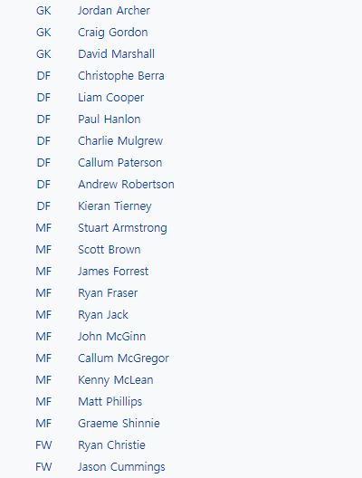 아쉽게 월드컵행이 좌절된 스코틀랜드와 네덜란드전에 대한 관심이 높은데 먼저 스코틀랜드는 주축 선수들을 대부분 제외했다. 로버트슨(리버풀) 필립스(브로미치) 프레이저(본머스)를 제외하면 자국리그와 잉글랜드 하부리그 선수들로 채웠다. 네덜란드도 일부 선수들은 빠졌지만 로벤(뮌헨) 바벨(베식타스) 블린트(맨유) 데파이(리옹) 등 주전 비중이 상대적으로 높다.