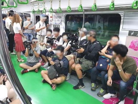 복잡한 지하철 안에서 좋은 프로그램을 위해 고생하는 제작진의 끈기와 열정을 엿볼 수 있는 장면이다.
