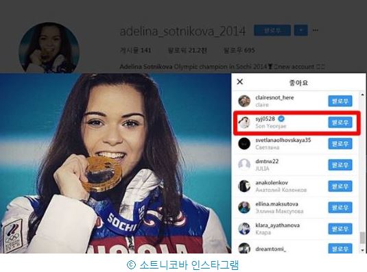 손연재는 "저의 인스타그램 아이디로 소트니코바의 사진에 '좋아요'가 눌렸다는 것을 알게 돼 너무 놀랐다"고 했다.
