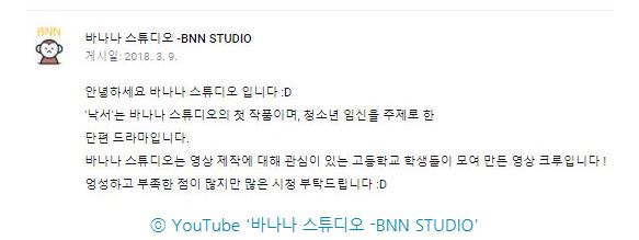 영상을 제작해 올린 '바나나스튜디오'는 영상 제작에 관심 있는 고등학생들로 구성된 동아리다.
