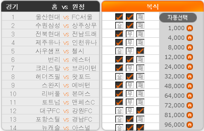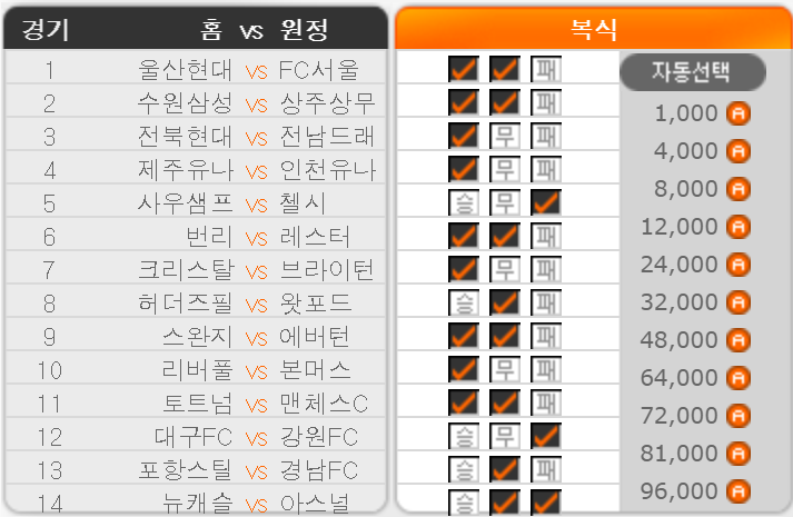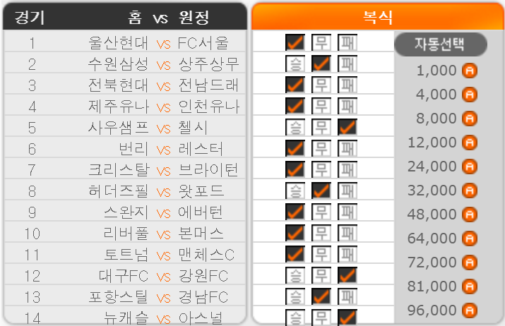 No 3. 전북 현대 1위 전남 드래곤즈 11위 – 68.77%/ 19.48%/ 11.74% (승)