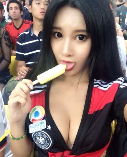 2014년 브라질 월드컵에서 크게 화제가 됐던 중국 미녀가 있다. 월드컵 8강전 프랑스 독일 경기에서 독일 레플리카를 입고 자신의 가슴에 휴대전화를 꽃은 채 육감적인 몸매를 과시했던 그녀.
