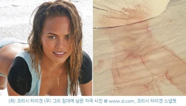 유명 모델 크리시 타이겐(Chrissy Teigen)이 공개한 '처참한 침대' 사진이 큰 화제를 모으고 있다.
