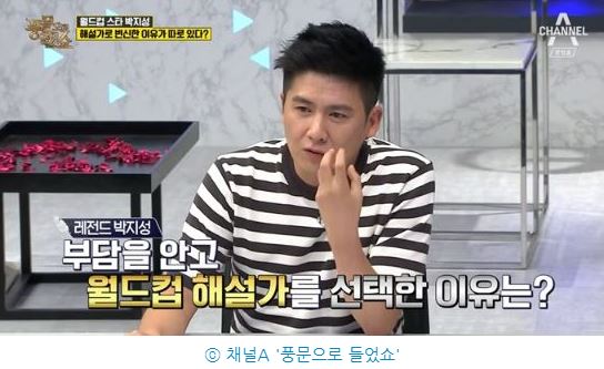 이에 한 패널은 "박지성은 해설을 했을 때 얻는 것보다 잃는 것이 더 많을지도 모르는 입장"이라고 했다.