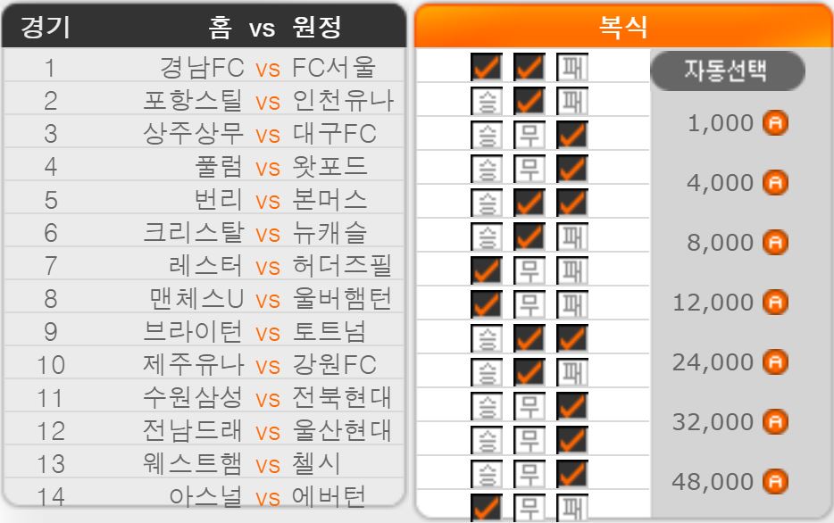 스포츠토토 승무패 27회차 14경기