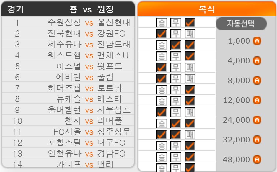 1. 수비에 의해서 승부가 갈릴 것이라고 판단했다면 서울이 지지 않는 쪽으로, 득점에 의해서 승부가 갈릴 것이라고 봤다면 상주가 지지 않는 쪽으로 배팅 방향을 잡아야 할 경기
