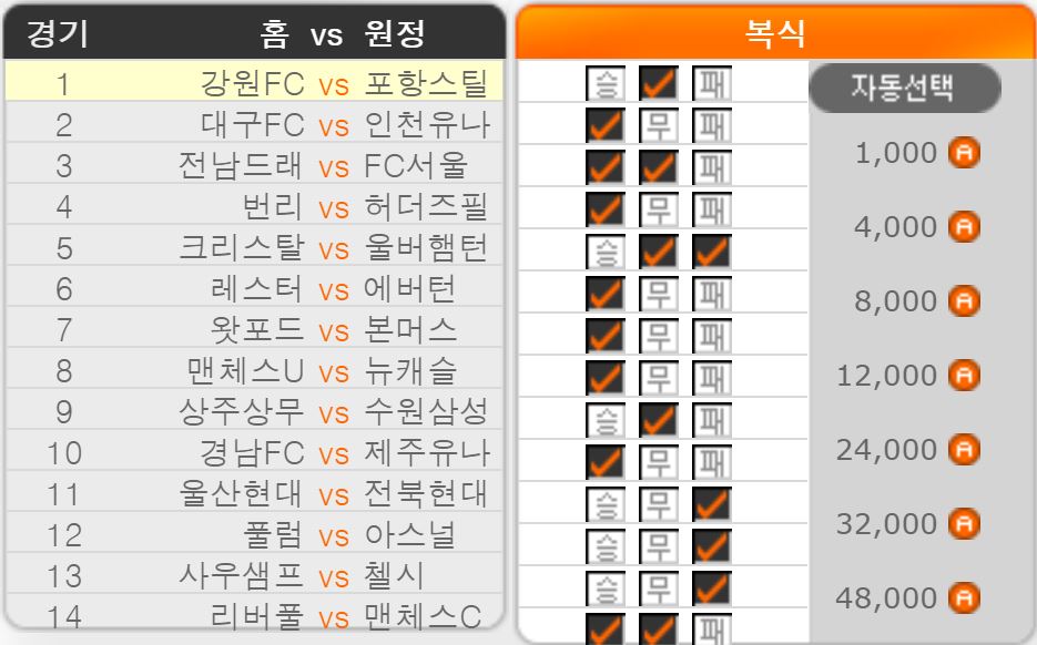 스포츠토토 승무패 29회차 14경기