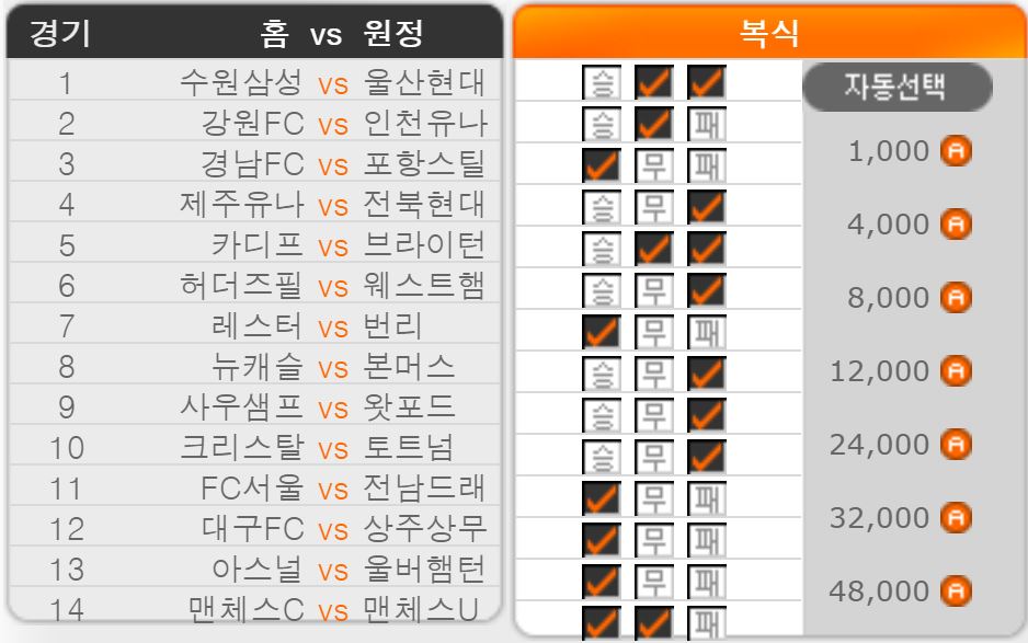 No 1. 수원 삼성 vs 울산 현대 – 무 or 패, 결과 3-3 적중