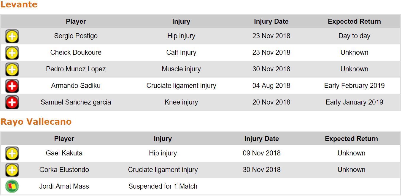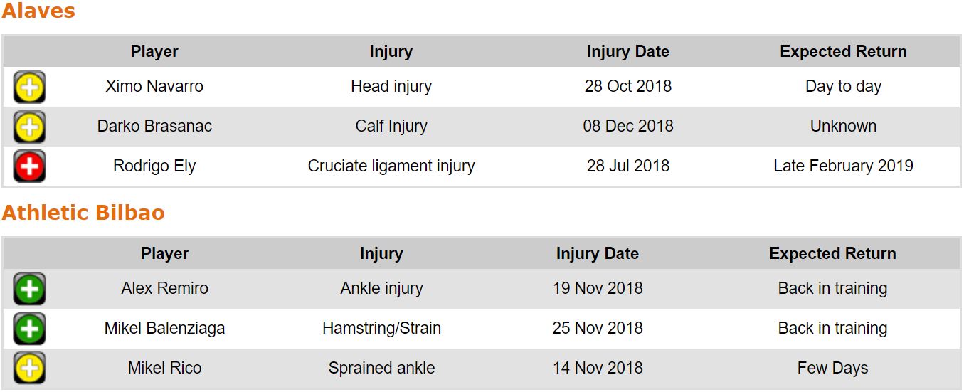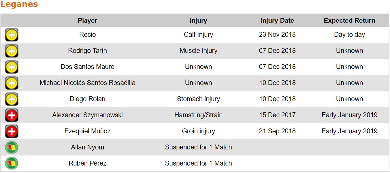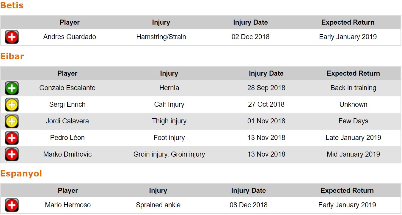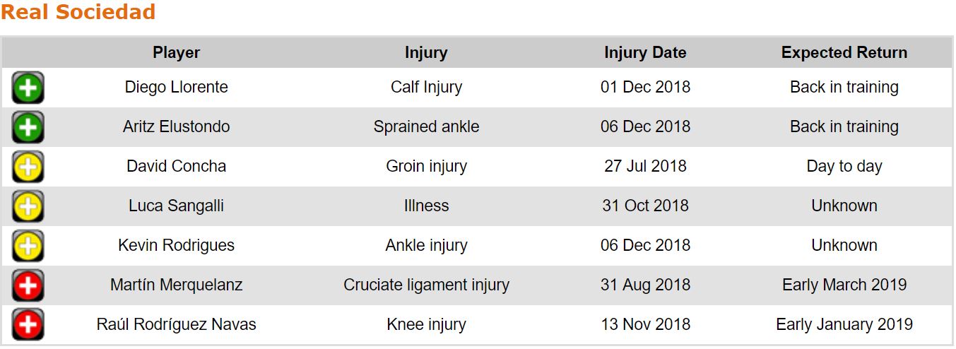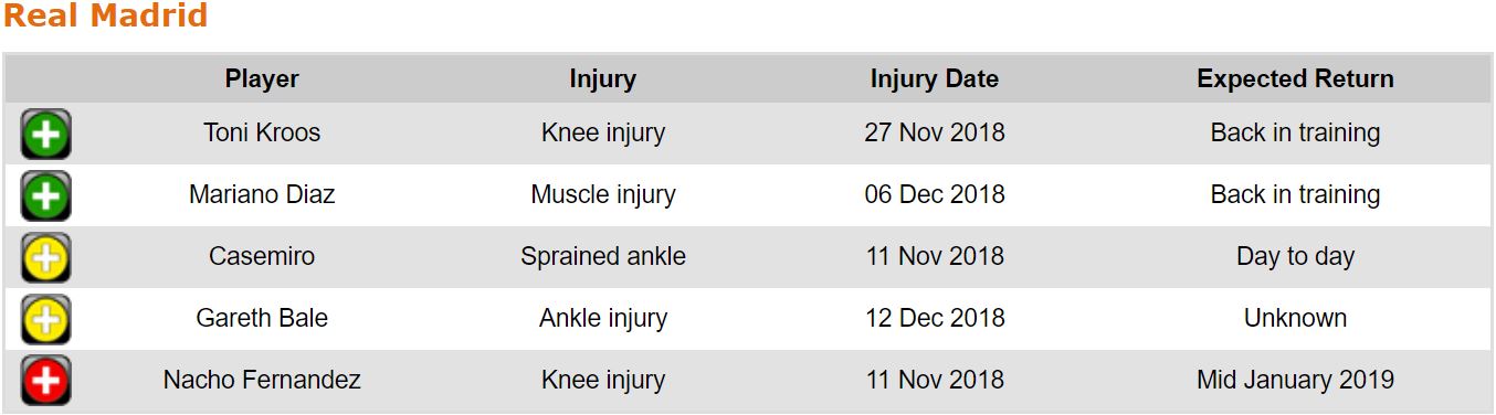 프리메라리가 16라운드 각 팀 부상자 및 결장 예정 선수