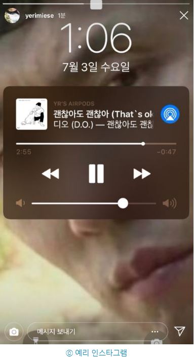 예리는 3일 오후 1시 6분경 이 노래를 들으며 휴대폰 잠금화면을 캡쳐한 것으로 보인다.