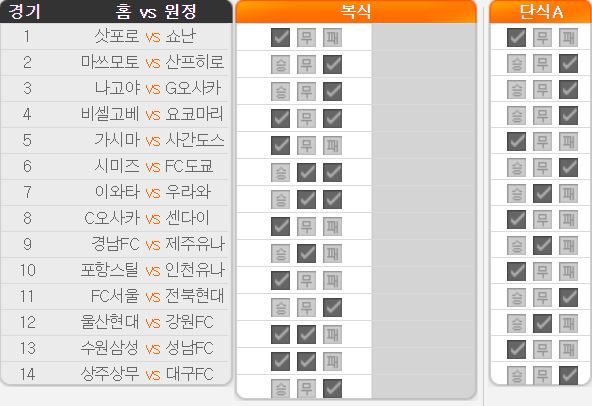 스포츠토토 승무패 26회차 14경기 중복 체크 우선 순위